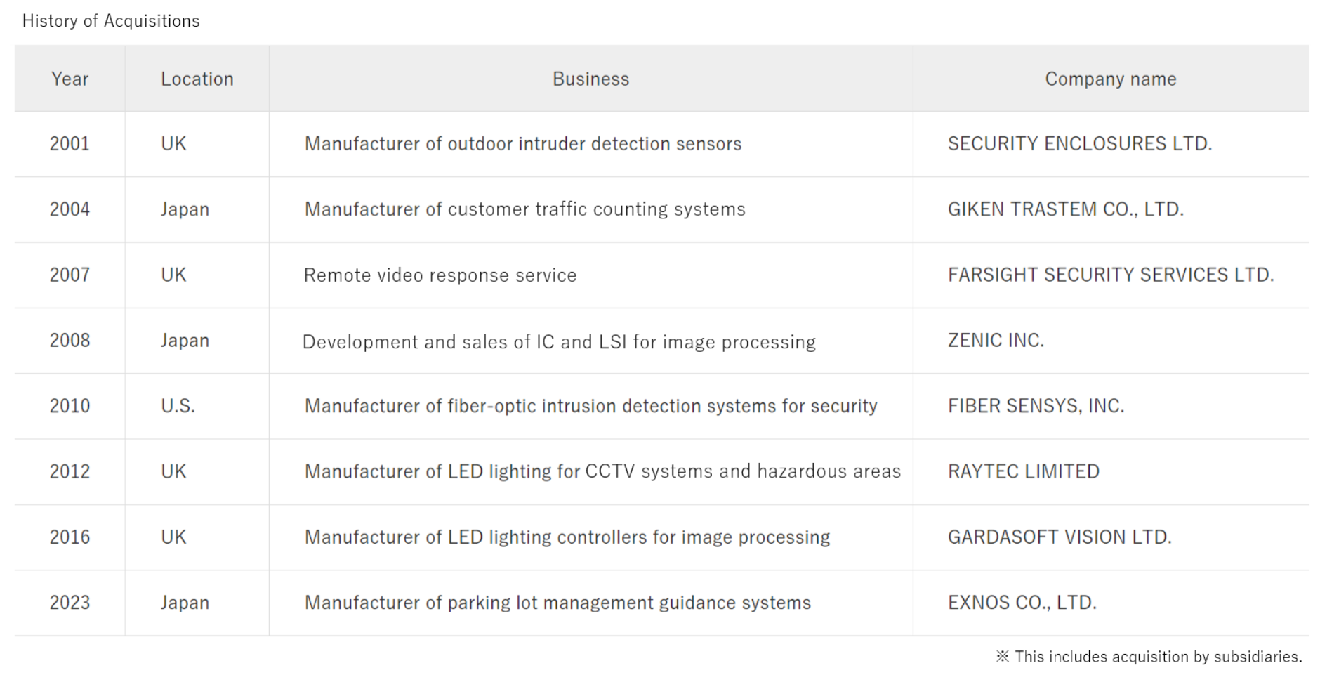 OPTEX's M&A Track Record