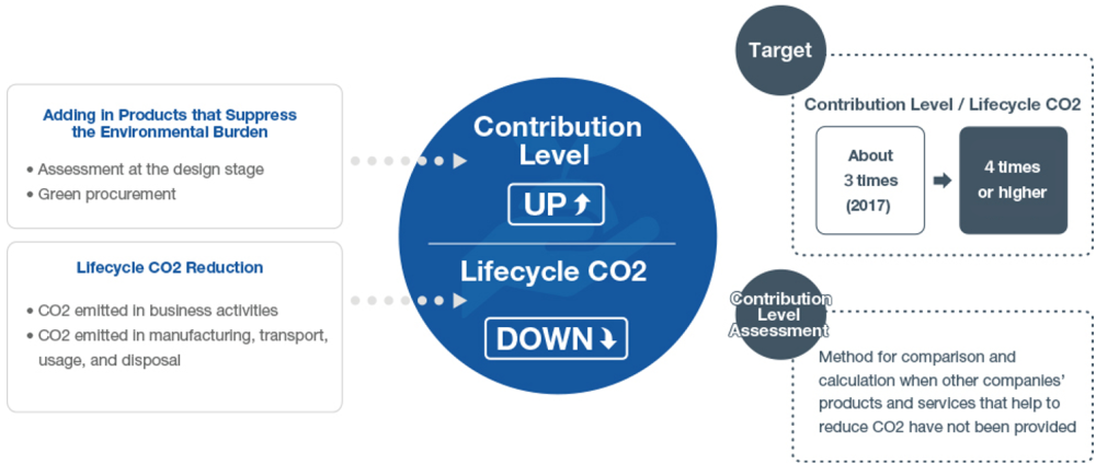 - This refers to CO₂ reductions achieved through product use being four times greater than total emissions from business operations, manufacturing, transportation, use, and disposal.