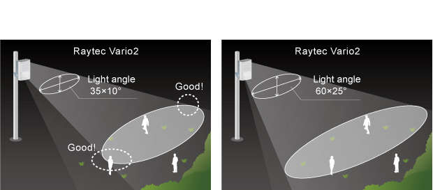 Infrared floodlights have a longer flood distance than the camera’s internal infrared lights.