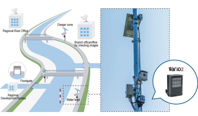 Installing floodlights makes it possible to obtain camera images with higher clarity, helping to reduce damage from river flooding by providing information such as the water level and the overall status of the river, which can then be used to determine abnormal conditions even before a disaster occurs.
