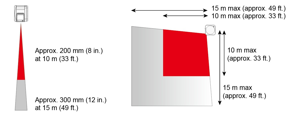 | 検知範囲 | 半径1~15 m、反射率10% | |
