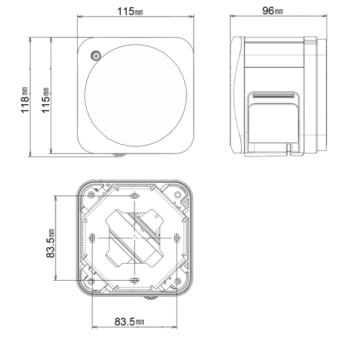 | 外形寸法 (HxWxD) | 118 × 115 × 96 mm | |
