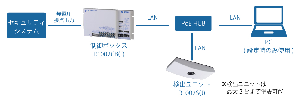 | 取付高さ | 検出ユニット | 2.4m~4.0m | 環境条件により性能が出ない場合があります | |