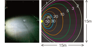 また配光はコインパーキングに多いコーナー設置を想定した90°サークルのため、敷地の角に設置しても機器から見て正面奥まで照らすことができます。