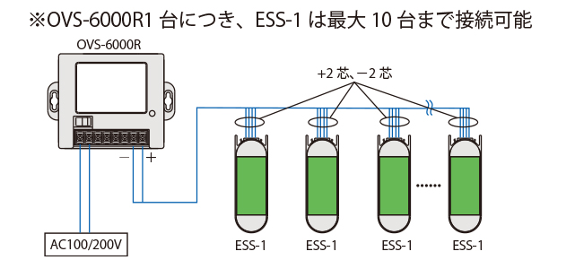 DC24V電源の4芯(+2芯、-2芯)の接続だけで運用可能