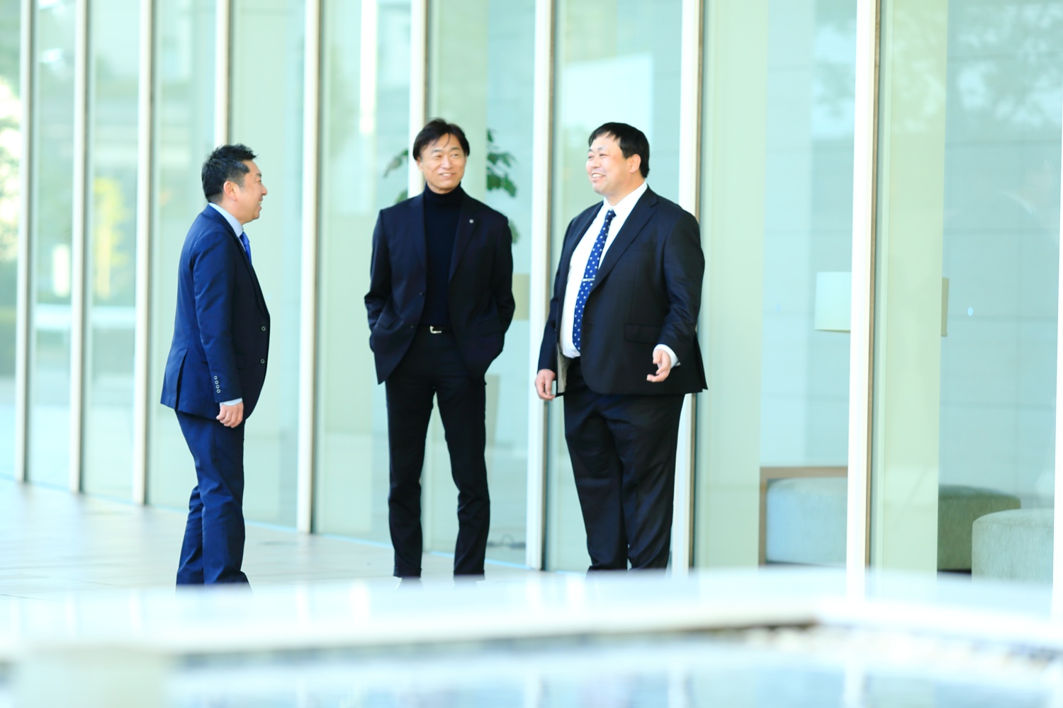 向かって左から清家さん、中島さん、角南さん。オプテックスの東京オフィスにて